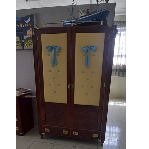 Capitano от Caroti – это коллекция премиум класса, создана для мальчиков, возможно будущих моряков. Все детали гармонично поддерживают стиль детской комнаты в морской тематике. В изготовлении используется шпон, массив красного дерева, натуральное лакированное покрытие, а также по краям используются декоративные элементы под золото, врезанные золотые ручки. Комод - пеленальный столик увеличивается в размере за счет выдвижных полок по бокам комода, там же располагаются два крючка, на которые можно вешать одежду на вешалки или что-то другое. Имеется много различных элементов мебели и декора, чтоб обставить комнату в морском стиле.