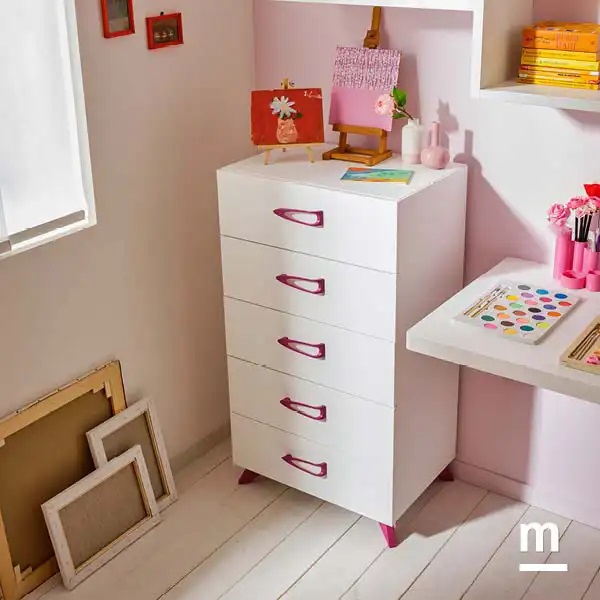 Чтобы наилучшим образом обставить спальню, необходимо максимально эффективно использовать все имеющееся пространство. Комод с пятью выдвижными ящиками, станет идеальным решением для поддержания порядке в детской и хранения вещей.